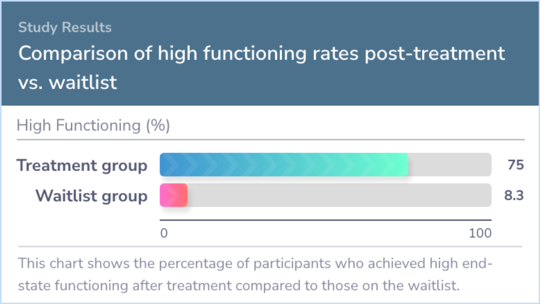 The results were promising, showing that 78% of the participants who received treatment no longer met the criteria for GAD after the therapy. Additionally, 77% of them achieved high levels of functioning. These improvements were not only sustained over time but also occasionally increased.