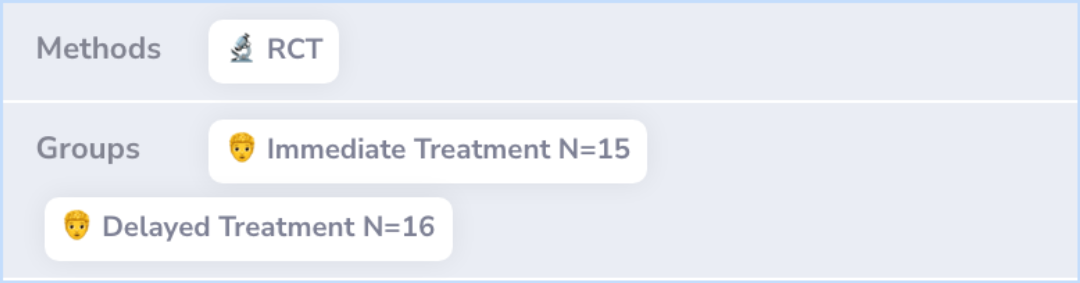Participants in the study were randomly assigned to either start treatment immediately or after a waiting period. Fifteen individuals began treatment right away, while sixteen waited. The therapy they received focused on acceptance-based behavioral techniques. This included teaching them how to better accept their thoughts and feelings, and take purposeful actions in their lives.