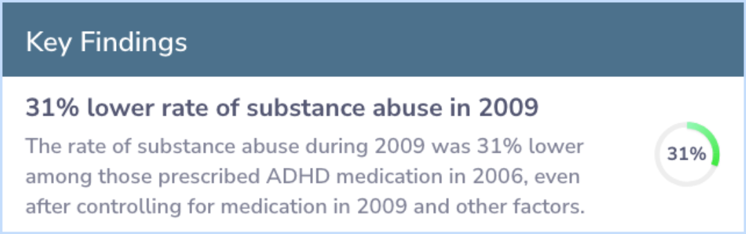 They found that individuals using stimulant ADHD medication had a 31% lower rate of substance abuse in 2009 compared to those not using the medication.