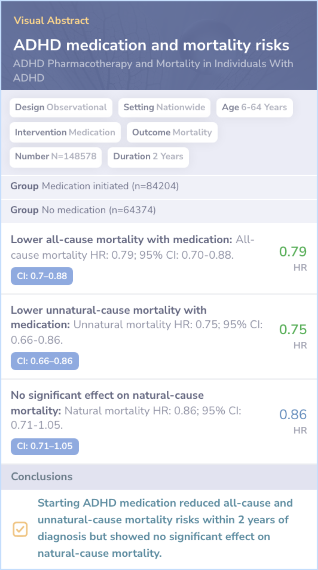 Core Insight:Both papers investigate how ADHD medication affects mortality, with a focus on all-cause and unnatural-cause deaths.