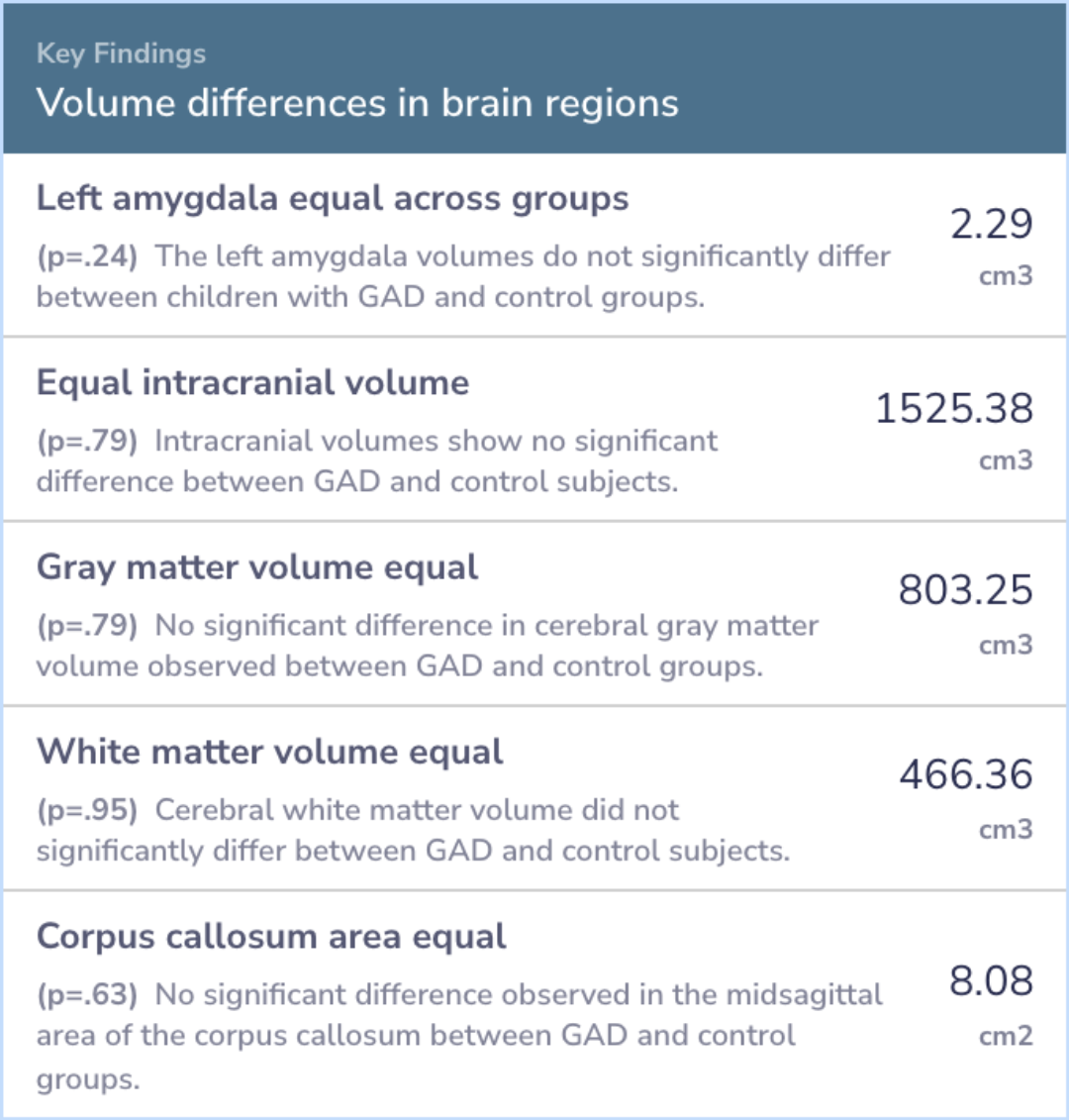 Future studies with larger sample sizes can build on this work to better understand the role of brain structures in developing childhood anxiety, and potentially inform treatments.