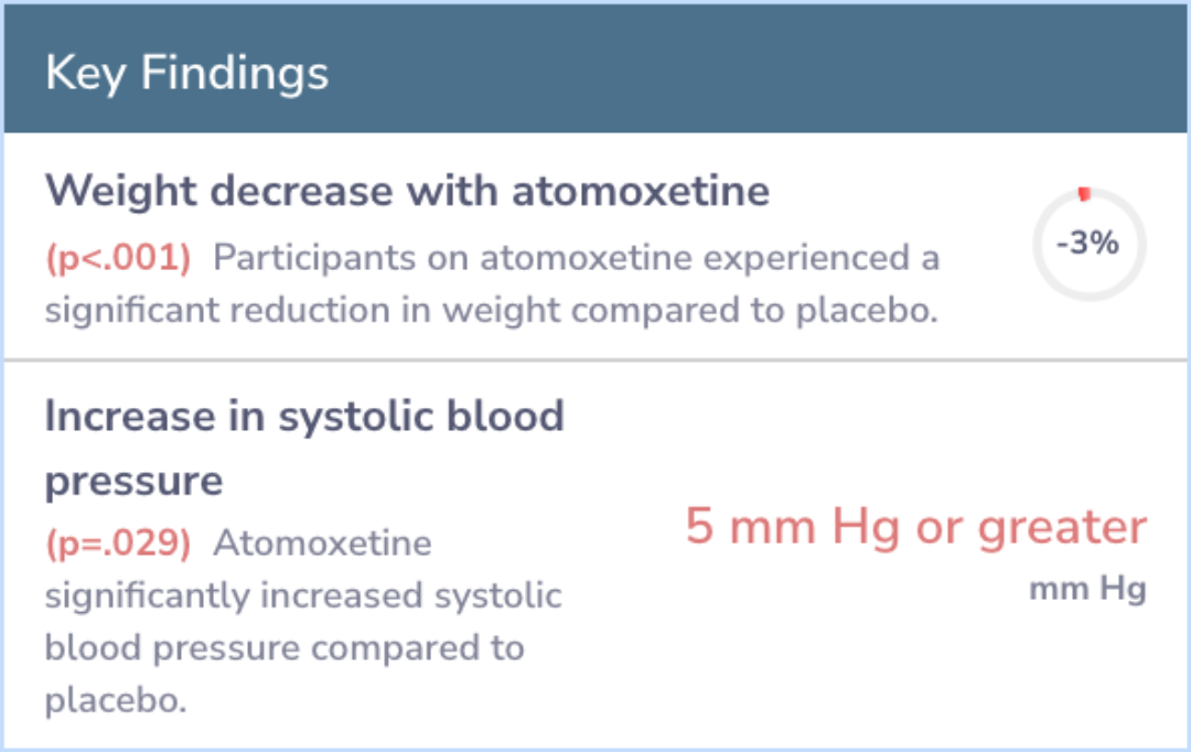 The study found that atomoxetine was more effective than the placebo in reducing ADHD symptoms according to the Conners' Rating Scale and helped improve other areas like quality of life and executive functioning. While atomoxetine showed clear benefits in these areas, not all assessments showed significant differences between atomoxetine and placebo.