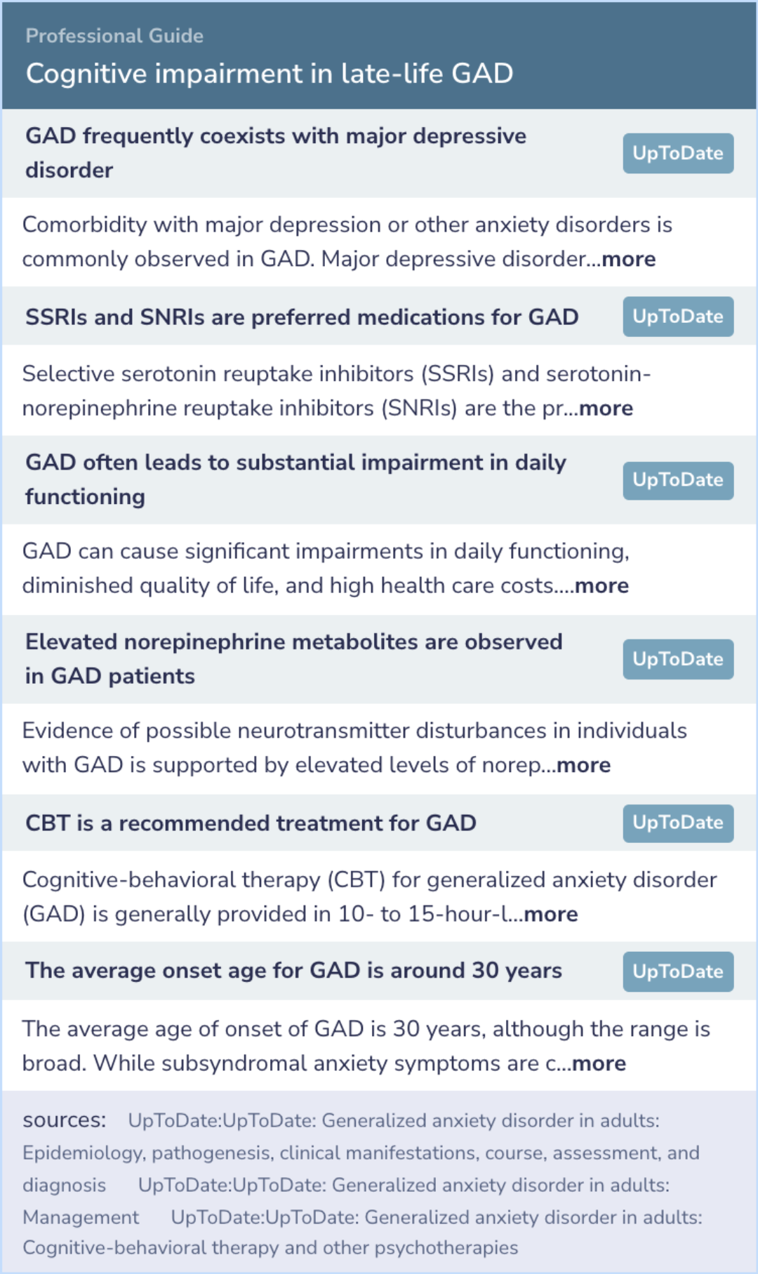 Current professional guidelines note the frequent comorbidity of GAD with major depressive disorder, reinforcing the study's comparative analyses.