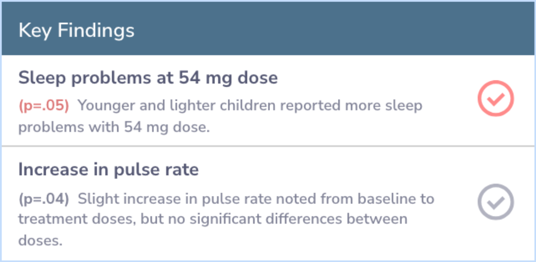 Parents and teachers rated ADHD symptoms weekly to assess the drug's effectiveness. In addition, the study tracked vital signs and noted any side effects, such as changes in sleep or appetite, at each dose.