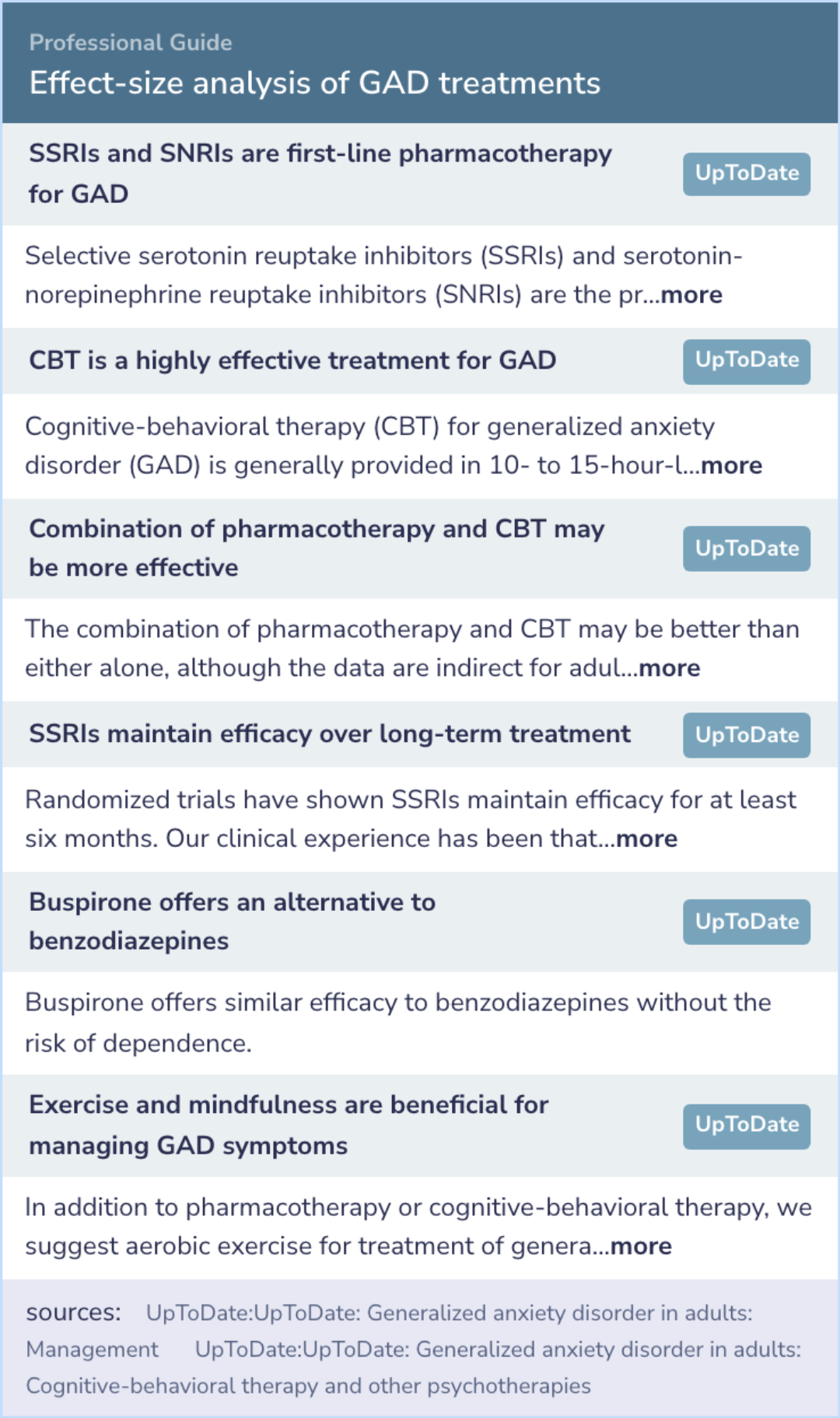 The overview highlights different medications used to treat Generalized Anxiety Disorder. It breaks down their effectiveness and safety based on clinical studies, offering an evidence-based perspective on managing GAD. The insights shared are grounded in expert guidelines.