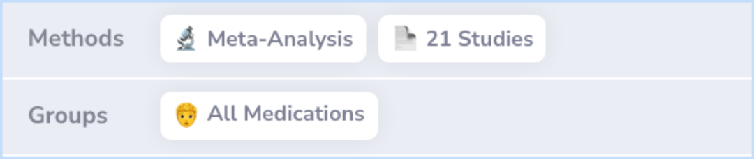 When comparing all medications against placebo, an effect size measure showed a moderate benefit. Pregabalin (Lyrica) scored the highest, followed by antihistamines and SNRIs. Benzodiazepines and SSRIs showed less impact, while alternative treatments like kava had negative effects.