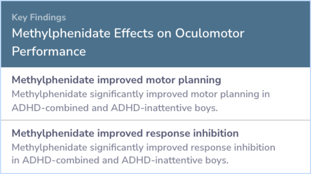 Boys with ADHD-combined had more difficulty with motor planning and response inhibition than controls, but no task-switching issues. ADHD-inattentive boys did not show these challenges. The ADHD-combined group had fewer predictive saccades and struggled with antisaccade tasks. Methylphenidate (Ritalin, Concerta) improved motor planning and response inhibition in both subtypes, but ADHD-C showed more pronounced deficiencies without treatment.