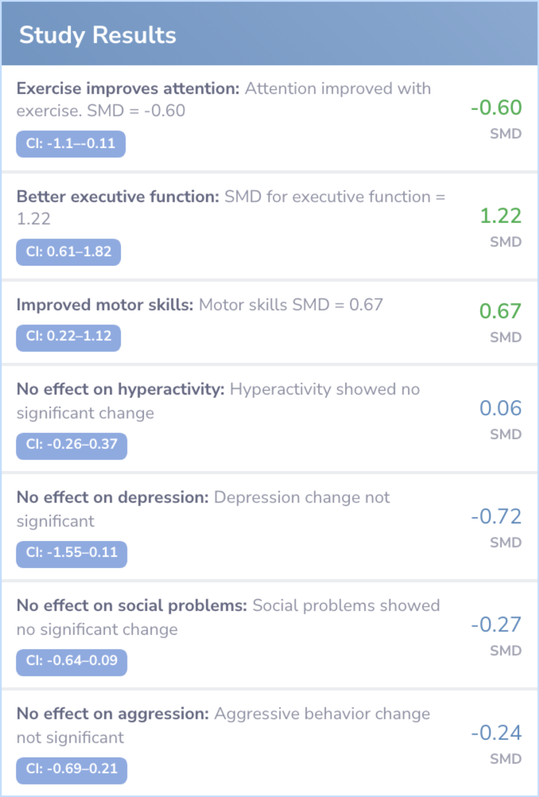 Shared Themes:Both studies affirm that physical activity can enhance executive function and motor skills in children with ADHD.