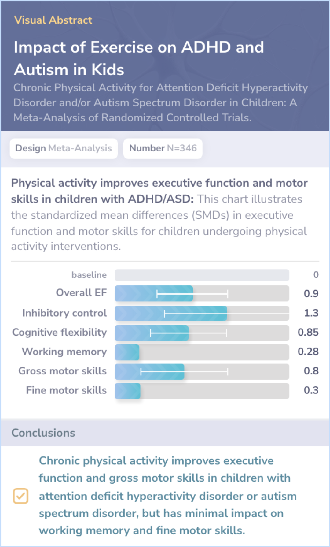 Core Insight:Both papers investigate the effects of physical activity on executive function and motor skills in children with ADHD, with the comparison paper also including children with autism.