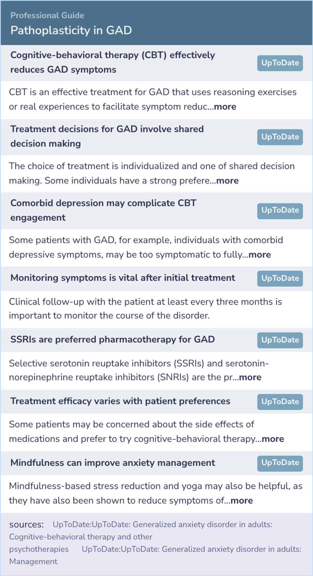 Given the diverse symptom manifestations, treatment decisions for GAD involve shared decision making to cater to individual preferences.