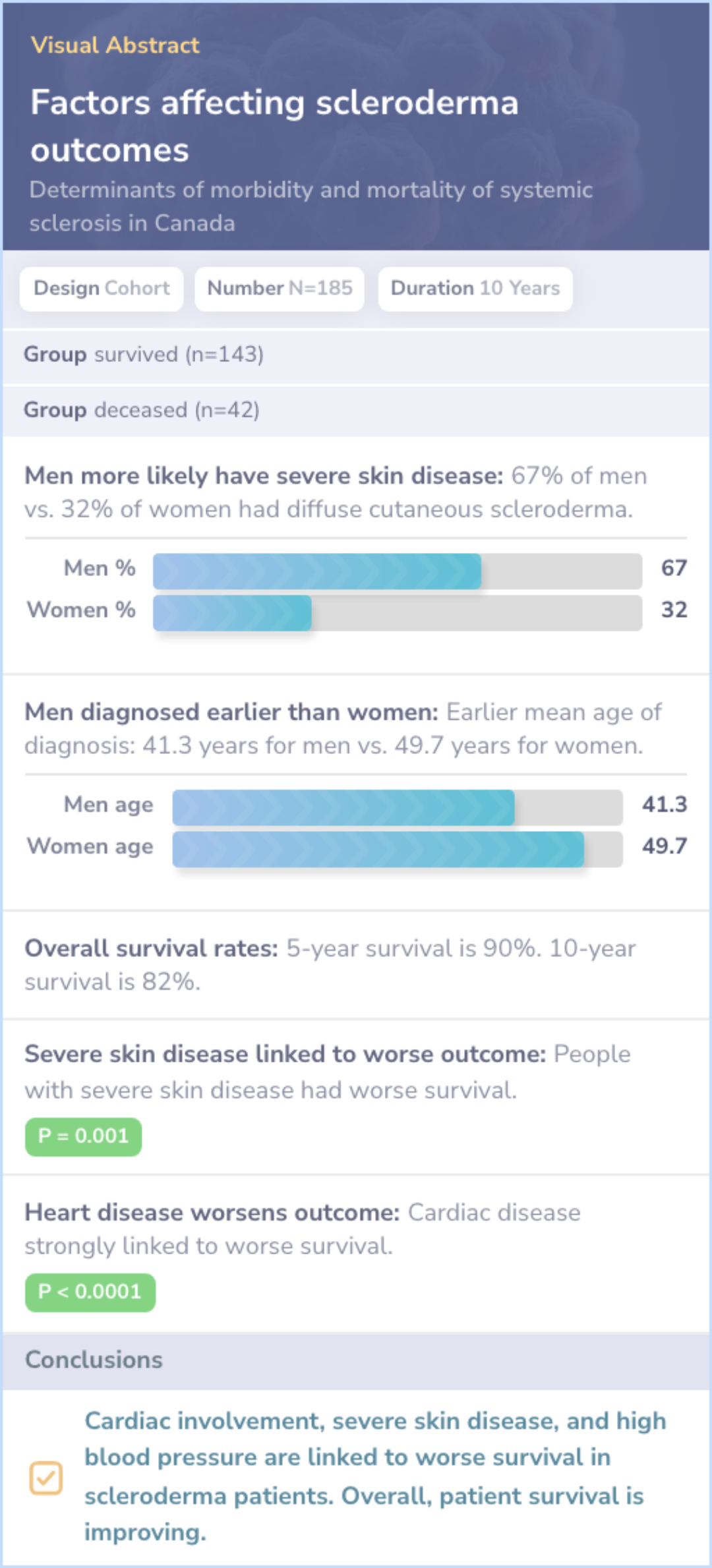 Socioeconomic Impact:Low household income increases death risk in scleroderma patients.