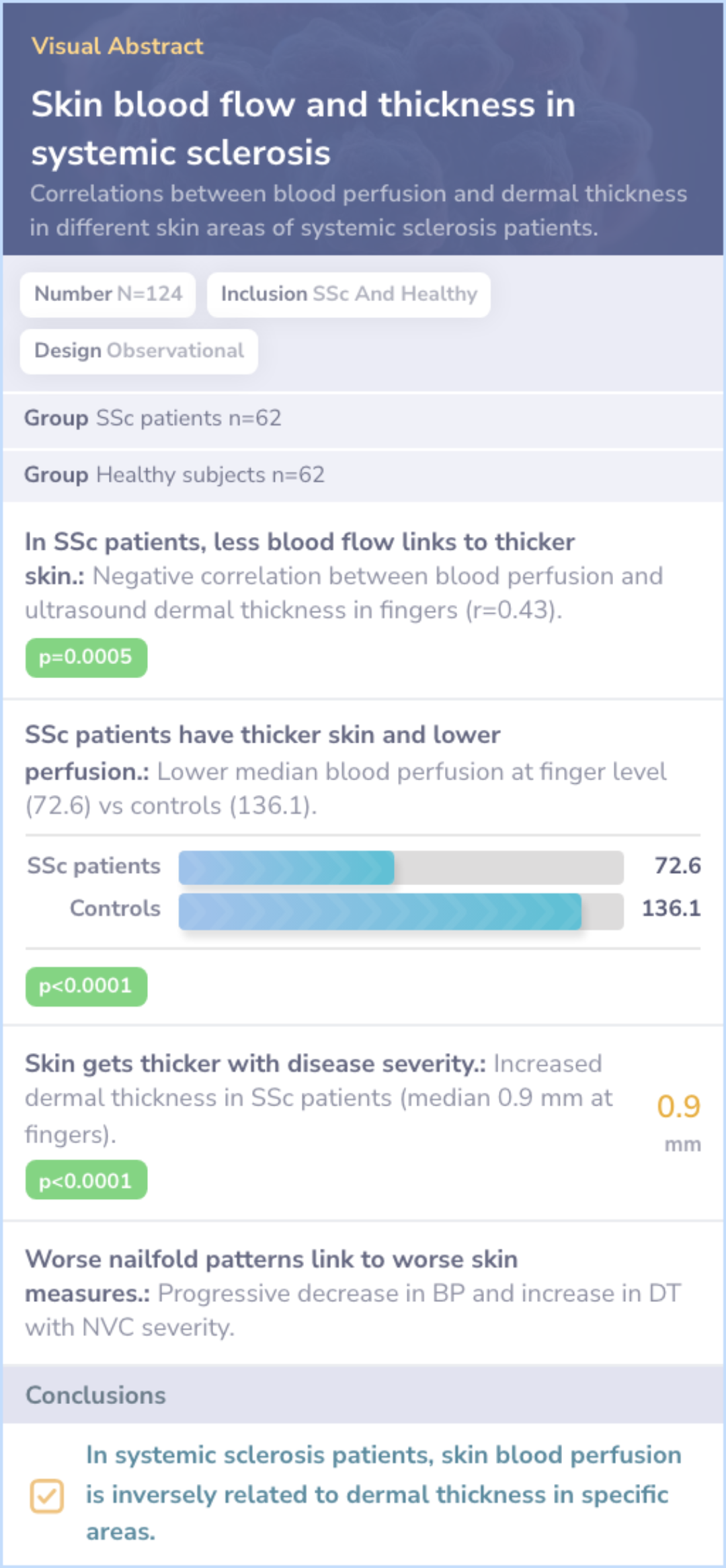 Blood Perfusion and Disease Severity:Blood perfusion decreases and skin thickness increases as disease severity progresses.